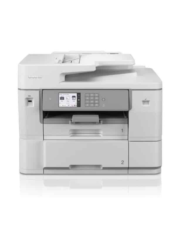 Multifunktionsprinter der tilbyder A3 og A4 farveblækudskrift, rullepapirsudskrift med en automatisk skærer til bannere og plakater, automatisk duplex-scanning og op til 30 spm udskriftshastighed med kablet og trådløs tilslutning.Brother MFC-J6959DW er en