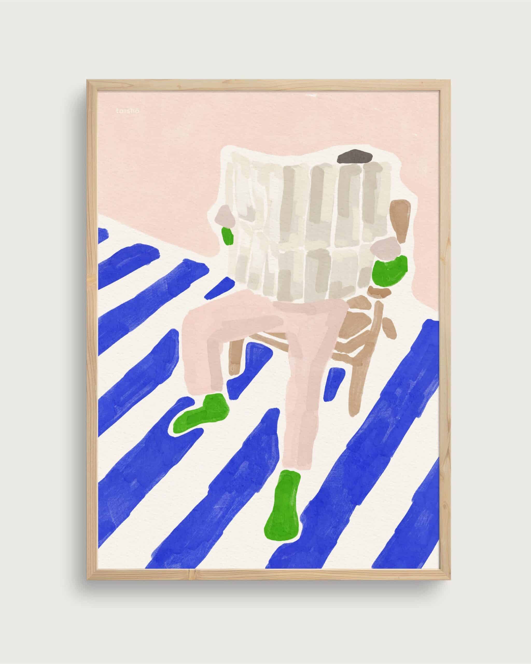 ‘Fyraften’ er fra serien ‘Et hjem’, der skildrer hverdagssituationer på en ærlig og ikke-poleret måde. Plakaten findes i to farvevarianter. Plakaten er tegnet med digitale guachefarver og har et analogt og lidt taktilt udtryk. Printe